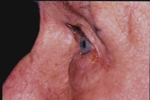 Fig 2. Entropion: the unstable lid margin has rotated onto the ocular surface