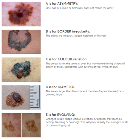 4. Abbasi NR, Shaw HM, Rigel DS, Friedman RJ, McCarthy WH, Osman I, Kopf AW, Polsky D. Early diagnosis of cutaneous melanoma: revisiting the ABCD criteria. JAMA. 2004 Dec 8;292(22):2771-6. doi: 10.1001/jama.292.22.2771. PMID: 15585738.