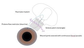 Looking back at my Molteno and Baerveldt tube surgery before 2023, in an audit of 54 consecutive public hospital tube implant cases from 2018–2023, all the eyes had significant risk factors for trabeculectomy failure or complications. Surgery would take 70–90 minutes, often needing general anaesthetic, described by registrars and nurses as the ‘paint dry’ technique. Around two-thirds of patients had undesirable high intraocular pressures (IOP) for the first month until the Vicryl tie dissolved and, for one-third of patients, the high pressure was a serious, difficult issue, despite the use of medications, such as Diamox.