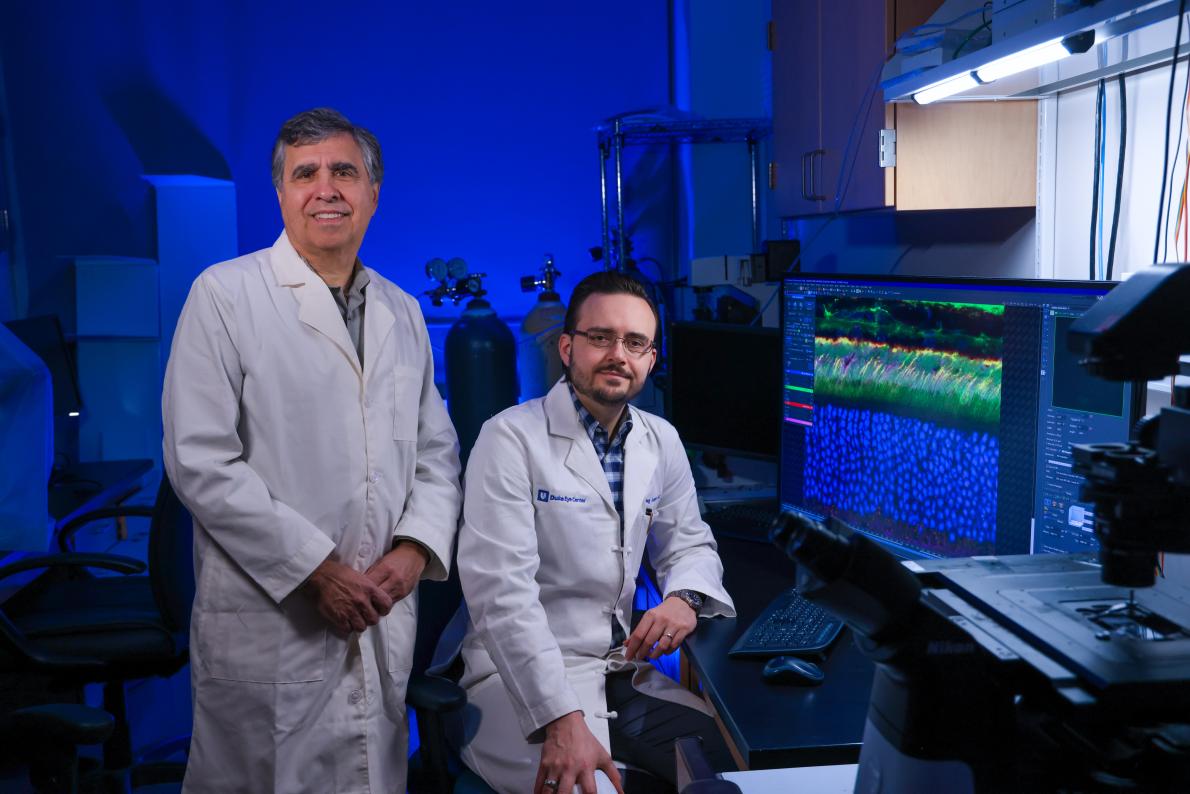 Rutherford Medal recipient looks at mouse retinas from a colony that models Alzheimer’s disease.