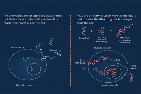 Fig 3. PYC Therapeutics’ enhanced RNA drug delivery mechanism. Credit: PYC Therapeutics