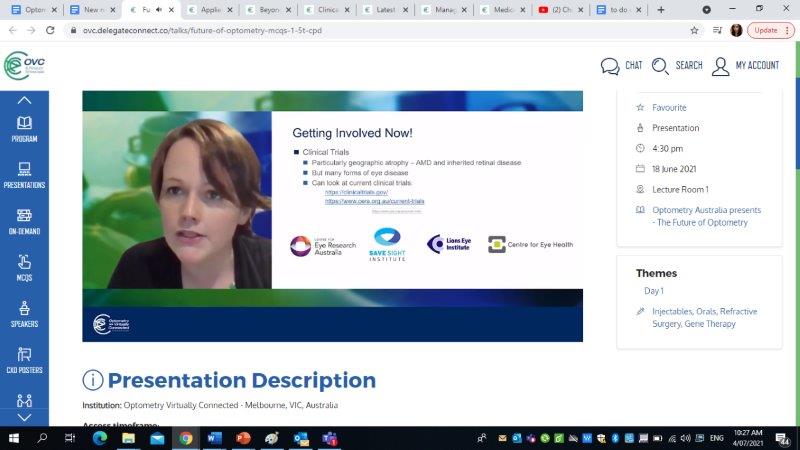 Even though I’m an O=Mega aficionado, I see OVC being a staple in the future of continuing education in optometry. It’s convenient for people who have work or family commitments, allows us to hear from speakers overseas (such as Dr Jim Thimons from Ophthalmic Consultants of Connecticut in the US, who presented at 1am his time!) and still has optional quizzes that allow you to gain CPD. You can even download the CPD quizzes for reference and replay lectures up to 90 days after the conference, which I feel improved my learning retention.